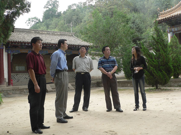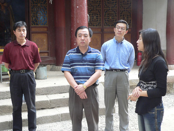 圖(中)為陳育明司長(zhǎng)在省外辦龍凌處長(zhǎng)和天水市外辦王元成主任的陪同下在伏羲廟參觀