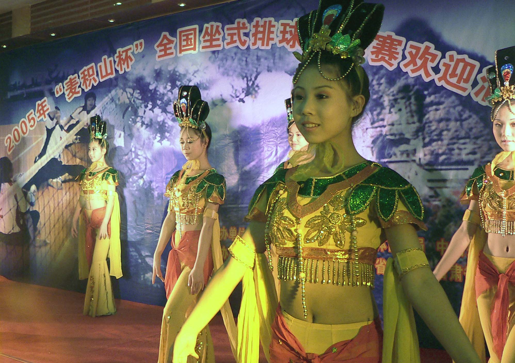 圖為9月4日晚舉行的2005年“麥積山杯”全國坐式排球錦標賽歡迎酒會上的文藝表演
