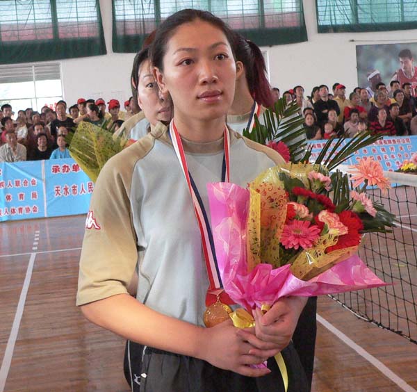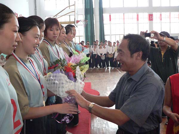 9月10日下午4時(shí)30分,全國(guó)坐式排球錦標(biāo)賽頒獎(jiǎng)儀式在市南山體育中心隆重舉行。頒獎(jiǎng)儀式由市委副書(shū)記張和平主持。省殘聯(lián)理事長(zhǎng)朱雪明、市委書(shū)記趙春,市委副書(shū)記、市長(zhǎng)張廣智,省殘聯(lián)副理事長(zhǎng)高世成,中殘聯(lián)競(jìng)賽部副部長(zhǎng)馬歷濤、業(yè)務(wù)督導(dǎo)華清滂、錦標(biāo)賽技術(shù)顧問(wèn)隋樹(shù)藩,市委常委、宣傳部長(zhǎng)孫周秦,市委常委、政法委書(shū)記韓岱成及副市長(zhǎng)蕭菡等出席了頒獎(jiǎng)儀式。在賽事裁判長(zhǎng)宣布比賽成績(jī)后,趙春、馬歷濤、孫周秦分別為獲得女子組比賽前三名的上海隊(duì)、甘肅隊(duì)、江蘇隊(duì)頒發(fā)了獎(jiǎng)牌;朱雪明、張廣智、韓岱成分別為獲得男子組比賽前三名的上海隊(duì)、甘肅隊(duì)、遼寧隊(duì)頒發(fā)了獎(jiǎng)牌。