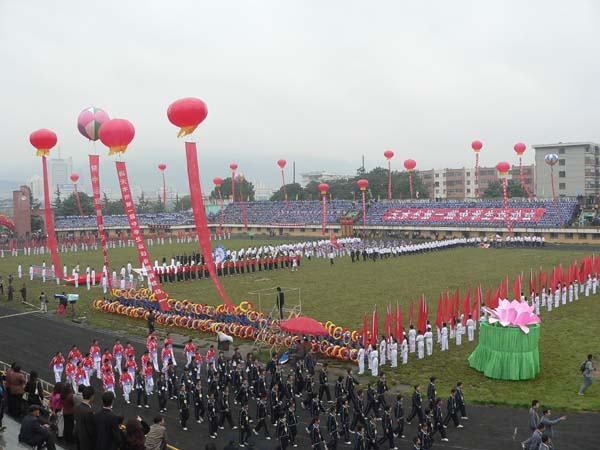 開幕式上,還宣讀了副省長李膺向我市第一屆中學(xué)生運動會發(fā)來的賀電。參賽運動員和裁判員代表進(jìn)行了莊嚴(yán)宣誓。市三中、市逸夫中學(xué)、市五中、市一中、天水師范學(xué)校的學(xué)生還進(jìn)行了大型文體表演《火熱的青春》。