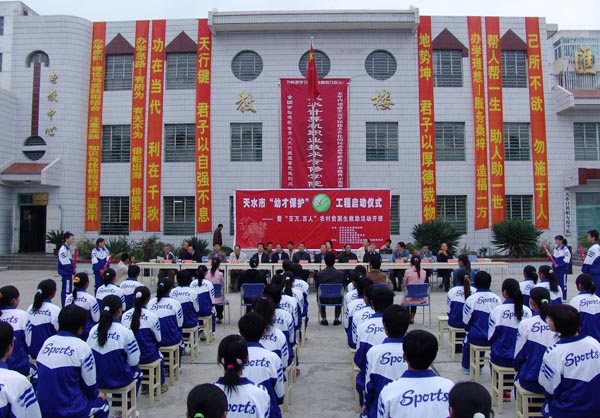 9月23日,天水計算機專修學院內(nèi)鼓樂聲聲,我市“幼才保護”工程啟動儀式暨“百萬·百人”農(nóng)村貧困生愛心傳遞助學成才活動開班儀式在這里隆重舉行。