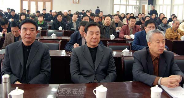 市政協(xié)主席馮沙駝、副主席白朝德、王欽錫、安志宏,秘書長馮進福,老干部胡正義、喬正風,駐秦州、麥積兩區(qū)的部分市政協(xié)委員,市政協(xié)各委辦主任、副主任及機關(guān)全體干部職工共130多人出席會議。