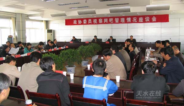 4月11日,市政協(xié)副主席陶元德帶領(lǐng)市政協(xié)科教文衛(wèi)體委員會(huì)及部分委員,對(duì)秦州、麥積兩區(qū)網(wǎng)吧管理情況進(jìn)行了專題視察,并特邀學(xué)校代表、學(xué)生代表和家長代表召開座談會(huì),聽取有關(guān)部門的工作匯報(bào),就進(jìn)一步加強(qiáng)全市網(wǎng)吧管理工作建言獻(xiàn)策。