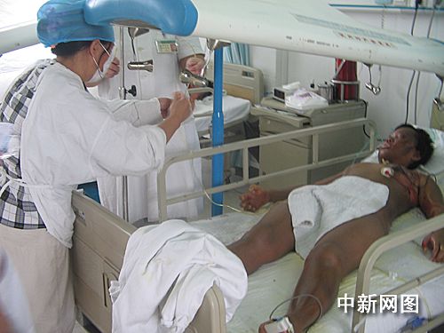 圖為劉林被燒傷后正在惠州市中心人民醫(yī)院搶救,生命垂危。