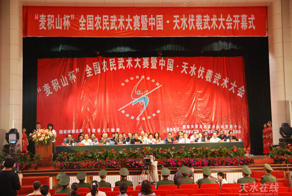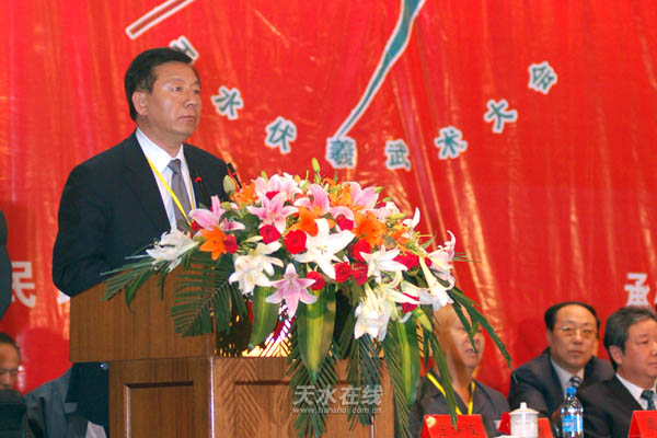 六月的天水,碧水青山,花團(tuán)錦簇,嘉賓云集,盛況空前,在這美好的季節(jié)里,首屆“麥積山杯”全國(guó)農(nóng)民武術(shù)大賽暨中國(guó) 天水伏羲武術(shù)大會(huì)在我市隆重開(kāi)幕了。在此,我謹(jǐn)代表中共天水市委、市人大常委會(huì)、市人民政府、市人民政協(xié)向賽會(huì)的舉辦表示熱烈的祝賀!向蒞臨賽會(huì)的各位領(lǐng)導(dǎo)、各位嘉賓和省內(nèi)外各界朋友表示熱烈的歡迎和感謝! [06-18 15:08] |