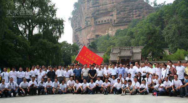 市長張廣智、副市長郭奇若與百名攝影人摩托車隊(duì)“為麥積山投票”活動(dòng)參加人員合影