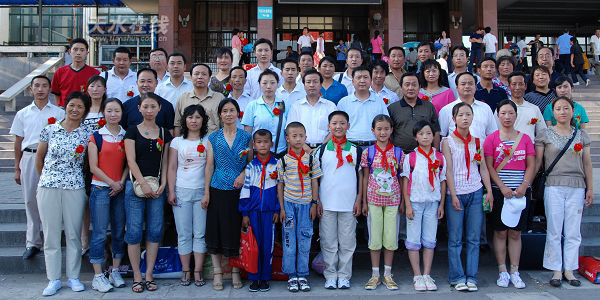 8月2日,天水副市長(zhǎng)郭奇若歡送參加“北京奧運(yùn)行”的教師和學(xué)生(圖)