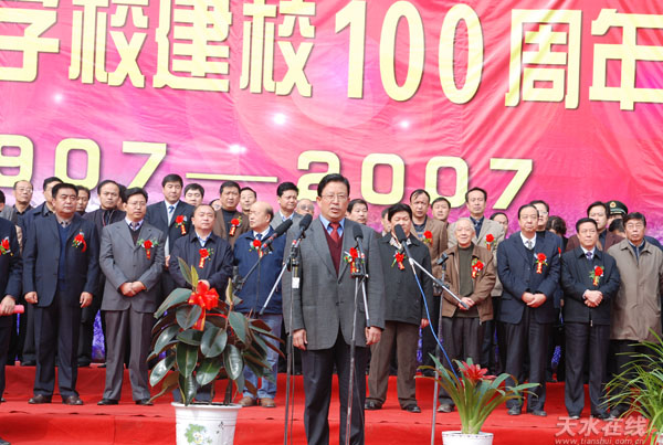 10月18日,雨后初晴的清水陽光燦爛,旌旗飄揚,鼓樂陣陣,天水農(nóng)業(yè)學校迎來了百年華誕。中共甘肅省委書記、省人大常委會主任陸浩題詞“百年學堂桃李遍隴原,千秋偉業(yè)譜寫新篇章”。省人大常委會副主任李膺、省政協(xié)副主席周宜興以及天水市黨政領(lǐng)導、省內(nèi)外嘉賓、新老校友及清水縣有關(guān)領(lǐng)導共2000多人參加了慶典活動。