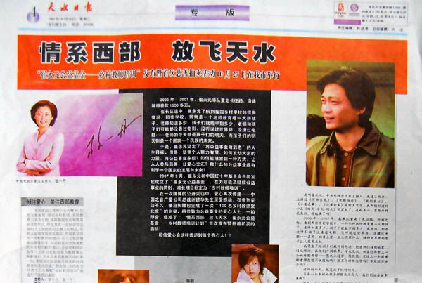 【中國之音 天水在線 訊】2007年10月27日,由央視著名主持人崔永元、中國之音廣播公司總裁謝建華兩位致力公益事業(yè)愛心人士一起合作策劃的慈善拍賣——中國紅十字基金會“崔永元公益基金”慈善拍賣2007年10月27日19時30分在甘肅天水秦州劇院舉行。