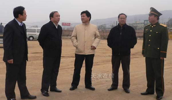 市領(lǐng)導(dǎo)先后到花牛鎮(zhèn)二十里鋪武警天水支隊(duì)指揮中心新址建設(shè)現(xiàn)場(chǎng)和支隊(duì)機(jī)關(guān),了解了支隊(duì)指揮中心建設(shè)情況、部隊(duì)基本建設(shè)情況和戰(zhàn)士值班備勤情況。虞海燕和張廣智分別講話,充分肯定了武警天水支隊(duì)在促進(jìn)地方建設(shè)中發(fā)揮的積極作用,并就進(jìn)一步加強(qiáng)部隊(duì)正規(guī)化提出了要求。
