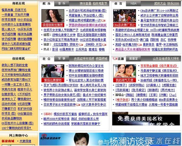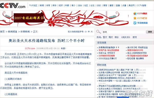 新浪網(wǎng)站在其首頁(yè)發(fā)布“奧運(yùn)圣火天水傳遞路線(xiàn)發(fā)布”的新聞(右上角第九排)