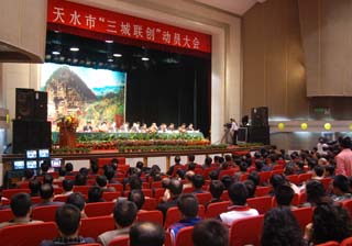 干凈整潔、碧水藍(lán)天——這是我們對(duì)居住環(huán)境的憧憬與追求;古韻悠悠、風(fēng)光旖旎、游人如織——這是天水這座積豐厚歷史文化底蘊(yùn)和優(yōu)美自然風(fēng)光于一體的城市,全體市民心目中旅游業(yè)發(fā)展最理想化的狀態(tài)。而這一切的實(shí)現(xiàn),都有賴于我們今天的努力,F(xiàn)在市委、市政府即將啟動(dòng)的“三城聯(lián)創(chuàng)”(創(chuàng)建國(guó)家衛(wèi)生城市、創(chuàng)建國(guó)家園林城市、創(chuàng)建中國(guó)最佳歷史文化旅游城市)活動(dòng),將這一藍(lán)圖著手繪制。我們相信,在全市上下的共同努力下,一個(gè)和諧美麗的新天水即將向我們走來.