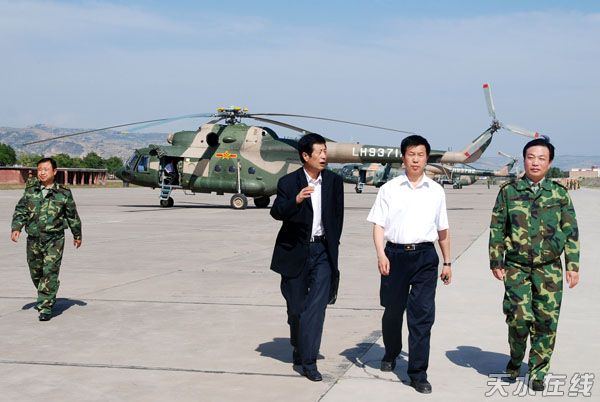 5月14日7時10分,擔任這次物資儲運工作的空軍某部特級飛行員張曉忠領(lǐng)航的三架直升飛機迎著初夏的晚霞,徐徐降落在天水飛機場,直升機停穩(wěn)后,120急救車急速?吭陲w機平臺,四名從隴南災區(qū)直運來的重病員,迅急接走運到天水第一人民醫(yī)院。