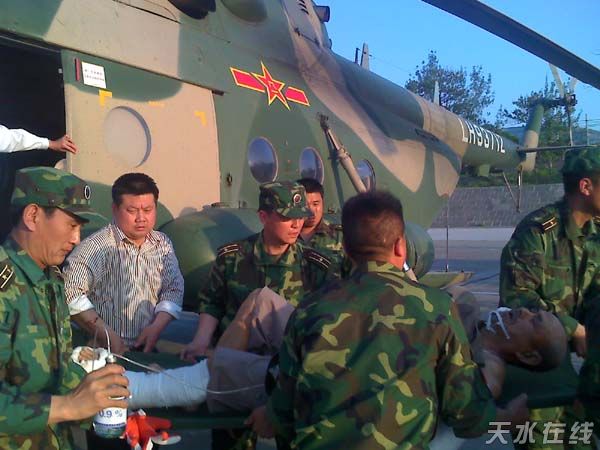 當天下午2時40分,由直升機從隴南市武都縣轉送的4名傷員、汽車從徽縣轉送的1名傷員在我市第一人民醫(yī)院接受治療。據了解,這5名傷員均有不同程度的外傷,其中4名病人病情基本穩(wěn)定,1名病人病情較重,市第一人民醫(yī)院組織了有關專家全力搶救。