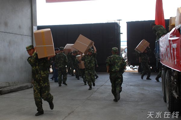 “5·12”汶川特大地震發(fā)生后,省委、省政府把天水確定為隴南等重災(zāi)市區(qū)救災(zāi)人員組織、物資搶運(yùn)的中轉(zhuǎn)基地和重要后方。對此,天水把支援隴南等重災(zāi)區(qū)作為抗震救災(zāi)的一項(xiàng)重要任務(wù),果斷調(diào)整思路,及時(shí)提出了“一個(gè)中心,兩項(xiàng)保障”的工作原則,即以抓好自身抗震救災(zāi)、恢復(fù)重建為中心,全力做好支援隴南等災(zāi)區(qū)物資轉(zhuǎn)運(yùn)的保障,全力做好全國各地前往隴南災(zāi)區(qū)慰問人員經(jīng)停天水期間的接待生活保障。一是組建機(jī)構(gòu),分工負(fù)責(zé)。市委、市政府成立了援助隴南等災(zāi)區(qū)物資儲(chǔ)運(yùn)領(lǐng)導(dǎo)小組,市委書記張景輝、市長李文卿負(fù)總責(zé),市委常委、軍分區(qū)司令員劉道成、軍分區(qū)政委劉斌負(fù)責(zé)當(dāng)?shù)伛v軍赴隴南抗震救災(zāi)部隊(duì)的協(xié)調(diào)工作,負(fù)責(zé)駐軍支援隴南抗震救災(zāi)車輛、裝備調(diào)配、中轉(zhuǎn)物資裝卸力量的組織工作,負(fù)責(zé)蘭空機(jī)組、蘭州軍區(qū)陸航團(tuán)機(jī)組與天水場站的協(xié)調(diào)工作;市委常委、秘書長張懷仁負(fù)責(zé)與隴南市委、市政府的聯(lián)絡(luò),特別是空運(yùn)物資投放地點(diǎn)的銜接工作,同時(shí)負(fù)責(zé)上級部門、部隊(duì)在天水期間的生活保障工作;副市長郭奇若負(fù)責(zé)支援隴南災(zāi)區(qū)的醫(yī)療、防疫隊(duì)伍的抽調(diào)組建工作,安排當(dāng)?shù)蒯t(yī)院隨時(shí)收治隴南災(zāi)區(qū)運(yùn)來的傷員;副市長趙衛(wèi)東負(fù)責(zé)為隴南災(zāi)區(qū)采購抗震救災(zāi)物資及組織上級支援救災(zāi)物資的中轉(zhuǎn)、儲(chǔ)存、裝卸、搶運(yùn)等工作;其他市級領(lǐng)導(dǎo)也從分管工作的角度支持配合援助隴南災(zāi)區(qū)的各項(xiàng)工作。二是協(xié)調(diào)調(diào)度,有序轉(zhuǎn)運(yùn)。及時(shí)制定下發(fā)了《天水市援助隴南等重災(zāi)區(qū)物資儲(chǔ)運(yùn)方案》,抽調(diào)專人組建辦公室,設(shè)立了3個(gè)物資轉(zhuǎn)運(yùn)點(diǎn),組織了由軍人、干部和群眾組成的850人的轉(zhuǎn)運(yùn)隊(duì)伍,24小時(shí)開展轉(zhuǎn)運(yùn)工作。從5月14日至6月12日,先后接收黑龍江、遼寧、吉林、天津、內(nèi)蒙古、山東、山西、江蘇、北京、浙江、深圳、新疆等10多個(gè)省區(qū)市和巴基斯坦、吉爾吉斯斯坦、烏茲別克斯坦、哈薩克斯坦、塔吉克斯坦、越南等國運(yùn)抵天水的救災(zāi)物資452車皮、105輛運(yùn)輸車,這些救災(zāi)物資包括帳篷、活動(dòng)板房、被褥、衣物、食品、藥品、大米、原糧等26大類2.7840萬噸。通過汽車運(yùn)送和空運(yùn),已全部運(yùn)往地震災(zāi)區(qū),日平均轉(zhuǎn)運(yùn)救災(zāi)物資928噸,其中汽車運(yùn)送3864臺(tái)次,空運(yùn)284架次。調(diào)用駐軍部隊(duì)、民兵預(yù)備役官兵8780人次,民工2875人次。調(diào)用地方車輛2136臺(tái)次,部隊(duì)車輛48臺(tái)次。救災(zāi)物資主要運(yùn)往隴南、甘南、臨夏、白銀、平?jīng)觥c陽、定西、蘭州等市州。天水市及駐軍部隊(duì)積極開展搶險(xiǎn)救災(zāi)和物資儲(chǔ)運(yùn)工作得到了國家和省上有關(guān)領(lǐng)導(dǎo)的充分肯定,中共中央政治局常委、中央政法委書記周永康,中共中央政治局委員、軍委副主席徐才厚,總政治部副主任孫忠同,省委、省政府、蘭州軍區(qū)空軍作戰(zhàn)部和省直有關(guān)部門領(lǐng)導(dǎo)先后視察指導(dǎo)和慰問部隊(duì)官兵,極大地鼓舞了廣大官兵和工作人員的熱情和干勁。目前,救災(zāi)物資轉(zhuǎn)運(yùn)工作正在有條不紊地進(jìn)行。三是顧全大局,鼎力援助。在做好自身抗震救災(zāi)工作的同時(shí),天水市積極支援重災(zāi)區(qū)人民抗震救災(zāi)。及時(shí)向隴南災(zāi)區(qū)援助20萬元,并先后籌備援助方便面1.5萬箱、餅干920箱、純凈水920箱、藥品210件350公斤、彩條布18噸、電線桿200根,向?qū)毘设F路嘉陵站調(diào)運(yùn)編織袋2.1萬條。主動(dòng)接收15名隴南傷員,并派出市四大組織領(lǐng)導(dǎo)、醫(yī)療小分隊(duì)3組(9人)赴災(zāi)區(qū)開展慰問、救援工作。醫(yī)療小分隊(duì)奮戰(zhàn)七天七夜,深入10多個(gè)鄉(xiāng)鎮(zhèn),救治重傷員169人,做手術(shù)19臺(tái)。5月30日,接到省抗震救災(zāi)指揮部指令,要求天水市緊急調(diào)運(yùn)600頂帳篷運(yùn)往隴南。當(dāng)時(shí),天水市沒有庫存的帳篷,天水市立即安排把已經(jīng)分配下?lián)艿娇h區(qū)的600頂帳篷抽調(diào)回來,連夜轉(zhuǎn)運(yùn)隴南,保證了災(zāi)區(qū)的急需。