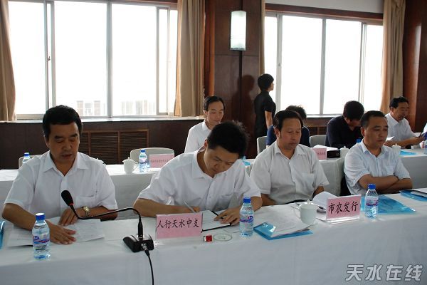 天水市銀監(jiān)分局局長(zhǎng)賈銳、人民銀行天水中心支行行長(zhǎng)馬常青、市直相關(guān)部門負(fù)責(zé)人、各銀行負(fù)責(zé)人以及各保險(xiǎn)公司負(fù)責(zé)人參加了會(huì)議。