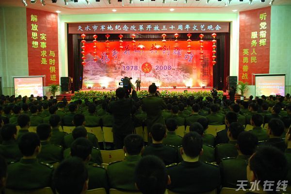 12月15日晚,由天水市委、市政府、天水軍分區(qū)、96363部隊(duì)主辦的天水市軍地紀(jì)念改革開放三十周年“攜手并進(jìn)、共創(chuàng)輝煌”文藝晚會(huì)在96363部隊(duì)舉行,市黨政軍領(lǐng)導(dǎo)張景輝、李文卿、宋敬國、韓岱成、張懷仁、劉道成、劉斌等觀看了演出。