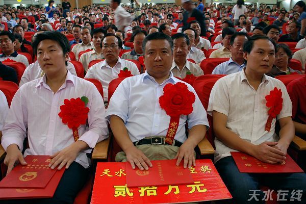 (資料圖片:天水市委書記張景輝為2007年天水市科技功臣馬炳烈頒發(fā)榮譽(yù)證書)
