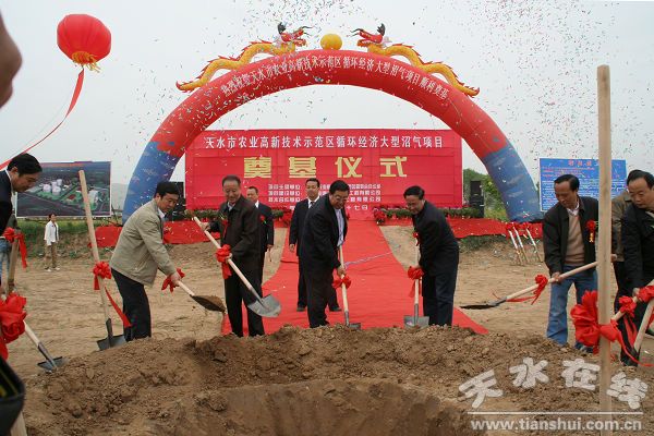 4月27日,我市首家循環(huán)經(jīng)濟(jì)大型沼氣項目開工奠基儀式在天水農(nóng)業(yè)高新技術(shù)示范園區(qū)舉行。