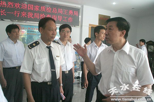 當天上午,王勇一行先后深入到天水市質(zhì)量技術(shù)監(jiān)督局、天水長城開關(guān)廠有限公司、天水出入境檢驗檢疫局,實地檢查了天水質(zhì)檢、長開廠產(chǎn)品質(zhì)量及出入境管理局產(chǎn)品質(zhì)量檢驗檢疫工作,聽取了市質(zhì)監(jiān)局的工作匯報,并作了講話。