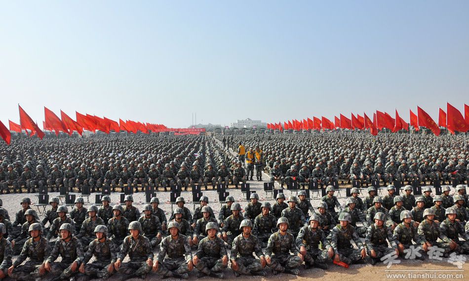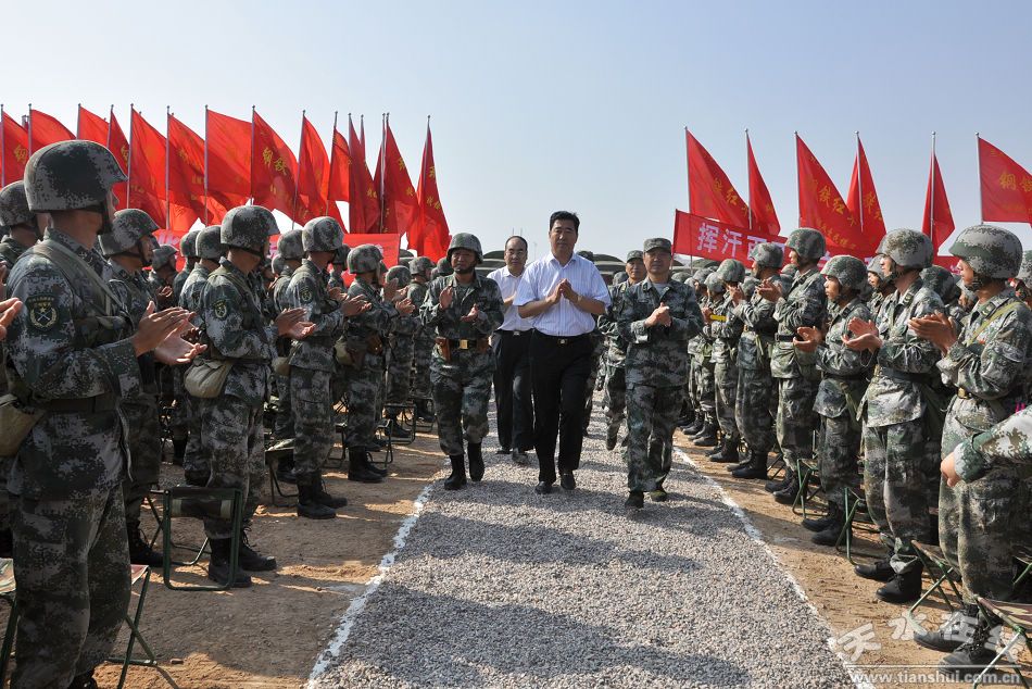 天水市黨政軍代表團(tuán)慰問(wèn)外訓(xùn)部隊(duì)文藝演出前,蘭州軍區(qū)某紅軍師師長(zhǎng)汪海江致辭,天水市委副書(shū)記、市長(zhǎng)李文卿代表天水市黨政軍慰問(wèn)團(tuán)講話。