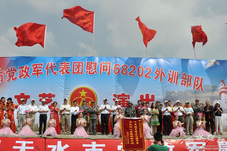 天水市黨政軍代表團(tuán)慰問(wèn)外訓(xùn)部隊(duì)文藝演出由中共天水市委、市人民政府和天水軍分區(qū)主辦,天水市軍分區(qū)政治部、市民政局,市雙擁辦承辦。