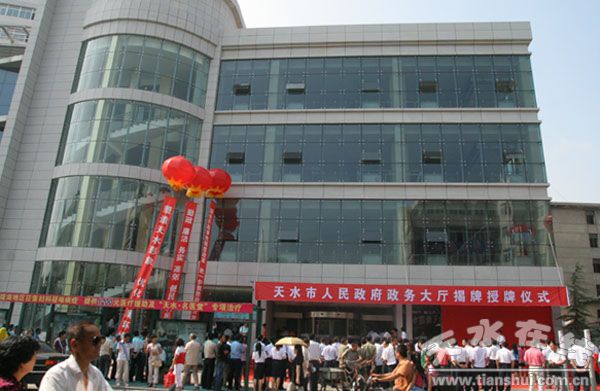 (8月6日上午,天水市人民政府政務(wù)大廳揭牌授牌儀式隆重舉行。)