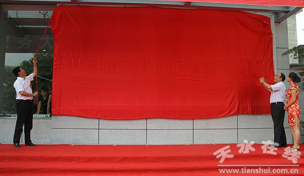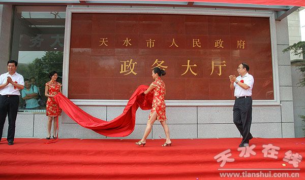 。8月6日上午,天水市委書(shū)記、市人大常委會(huì)主任張景輝,市委副書(shū)記、市長(zhǎng)李文卿為天水市人民政府政務(wù)大廳揭牌。)