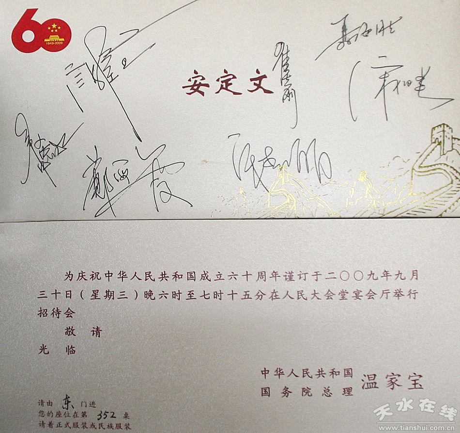 9月30日至10月1日,全國抗震救災(zāi)模范、甘肅抗震救災(zāi)優(yōu)秀共產(chǎn)黨員、奉獻(xiàn)天水2008——十大杰出人物、天水市政府副秘書長安定文被推薦為全國先進(jìn)模范人物代表,光榮的參加了國慶觀禮活動。