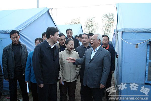 11月6日下午,中共中央委員、民政部黨組書記、部長李學舉在甘肅省副省長張曉蘭、省民政廳廳長田寶忠以及天水市委常委、政法委書記韓岱成,副市長蕭菡的陪同下,深入麥積區(qū)馬跑泉鎮(zhèn)楊灣村,檢查了天水市災(zāi)后恢復(fù)重建工作。