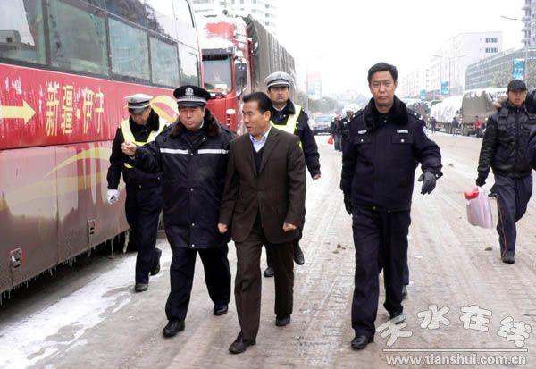 11月16日,天水市委常委、常務(wù)副市長柴金祥對全市道路交通通行情況進(jìn)行了檢查。柴金祥要求全市交警部門要全警動員,全面管控,全力保障雪天道路交通安全暢通。