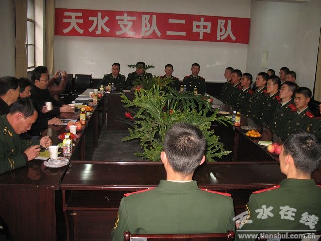 11月15日下午,天水市“愛心進(jìn)警營”文化擁軍活動走進(jìn)武警天水支隊(duì)二中隊(duì),專家學(xué)者、企業(yè)家與部分即將復(fù)員的武警戰(zhàn)士就理想、信念與復(fù)員后的困惑進(jìn)行交流。