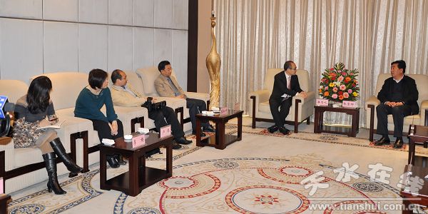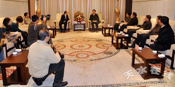 12月8日中午,中共天水市委書記、市人大常委會主任張景輝在天水賓館會見SOHO中國董事長潘石屹,箭牌衛(wèi)浴事業(yè)部總經(jīng)理方春一行,天水市委常委、宣傳部長王光慶,市委常委、副市長郭奇若,市委常委、市委秘書長蔣曉強陪同會見。