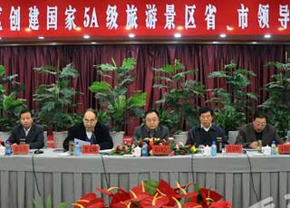 市委書記、市人大常委會主任張景輝在會上強(qiáng)調(diào),各相關(guān)縣區(qū)政府,市直部門和單位要正視存在的困難和嚴(yán)峻形勢,堅定創(chuàng)建的信心,借助國家出臺的新政策,乘勢而上,增強(qiáng)創(chuàng)建國家5A級旅游景區(qū)的責(zé)任感和緊迫感,進(jìn)一步落實(shí)責(zé)任、抓緊整改,全面進(jìn)行一次回頭看;要克服松勁厭戰(zhàn)情緒,重點(diǎn)抓好景區(qū)交通設(shè)施、游覽服務(wù)、旅游安全保障、環(huán)境衛(wèi)生管理、郵電服務(wù)、旅游購物等方面的提質(zhì)達(dá)標(biāo)工作,進(jìn)一步完善文本資料、專題片和風(fēng)光片,努力營造全市創(chuàng)建5A旅游景區(qū)工作的濃厚氛圍;要加強(qiáng)領(lǐng)導(dǎo),強(qiáng)化督促檢查,實(shí)行“丟分問責(zé)制”,全力確保實(shí)現(xiàn)創(chuàng)建目標(biāo)。