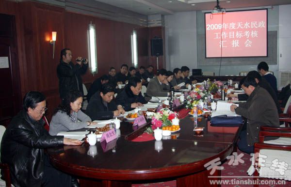 在16日下午召開的天水市2009年度民政工作目標考核匯報會上,天水市民政部門負責同志匯報了天水市2009年民政工作及天水市新社會組織學習實踐科學發(fā)展觀活動情況。考核組對天水市民政工作所取得的成績給予了充分肯定
