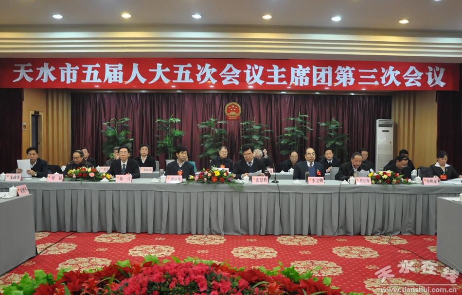 1月19日下午,天水市五屆人大五次會議主席團舉行第三次會議。會議由大會主席團常務(wù)主席任伯年主持。