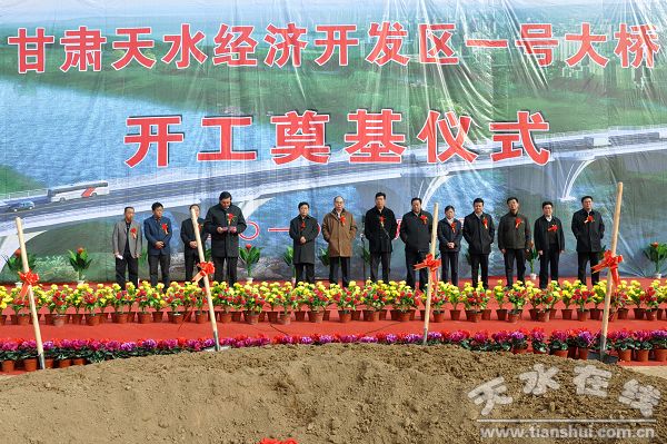 2月2日上午,天水經(jīng)濟(jì)開發(fā)區(qū)社棠工業(yè)園渭河一號大橋奠基動工,市領(lǐng)導(dǎo)張景輝,李文卿,宋敬國,蔣曉強(qiáng),黃郁,趙衛(wèi)東和市長助理、市政府秘書長安永出席奠基儀式。