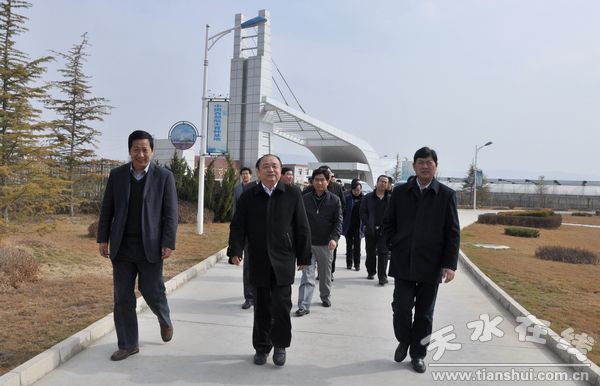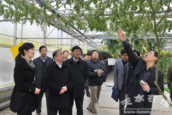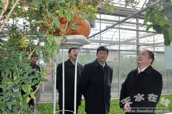 (圖為省委組織部常務(wù)副部長張廣智在天水農(nóng)業(yè)高新技術(shù)示范園區(qū)調(diào)研)