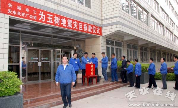 為支援青海玉樹抗震救災(zāi)、重建家園,4月22日至26日,長城電工天水長城開關(guān)廠有限公司組織黨員、領(lǐng)導(dǎo)干部和職工開展為青海玉樹地震災(zāi)區(qū)“送溫暖、獻(xiàn)愛心”捐款活動。