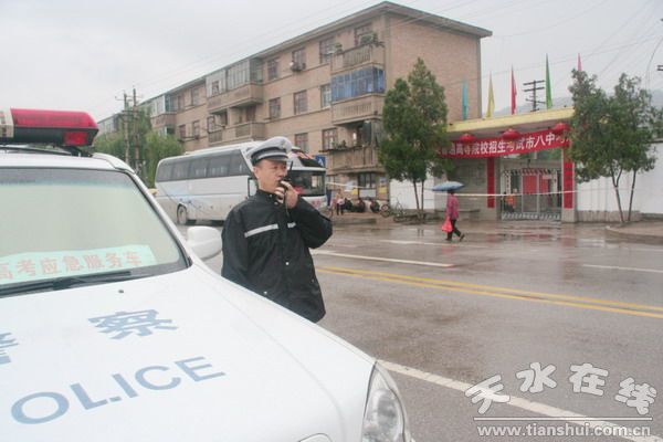 今年高考,天水交警繼承以往優(yōu)良傳統(tǒng),堅持“一切為了考生”的原則,積極做好各項交通服務工作。各縣區(qū)交警大隊分別成立高考勤務保障領(lǐng)導小組,制定完善應急預案,組裝高考服務車,增派路面執(zhí)勤民警,采取定點執(zhí)勤與流動巡查相結(jié)合的方式,在通往各考點的重要路口和路段,加強交通組織和疏導,引導大型車輛從考點附近路段繞道行駛,嚴防交通擁堵,以確保高考考生和家長、監(jiān)考教師和工作人員及高考專用車輛的交通安全和暢通,全力為高考保駕護航。