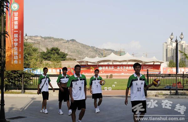 記者在西北師大附中的校園里,隨時都可以看到身穿天水代表隊服裝的運動員和教練員,他們都顯得十分精神。