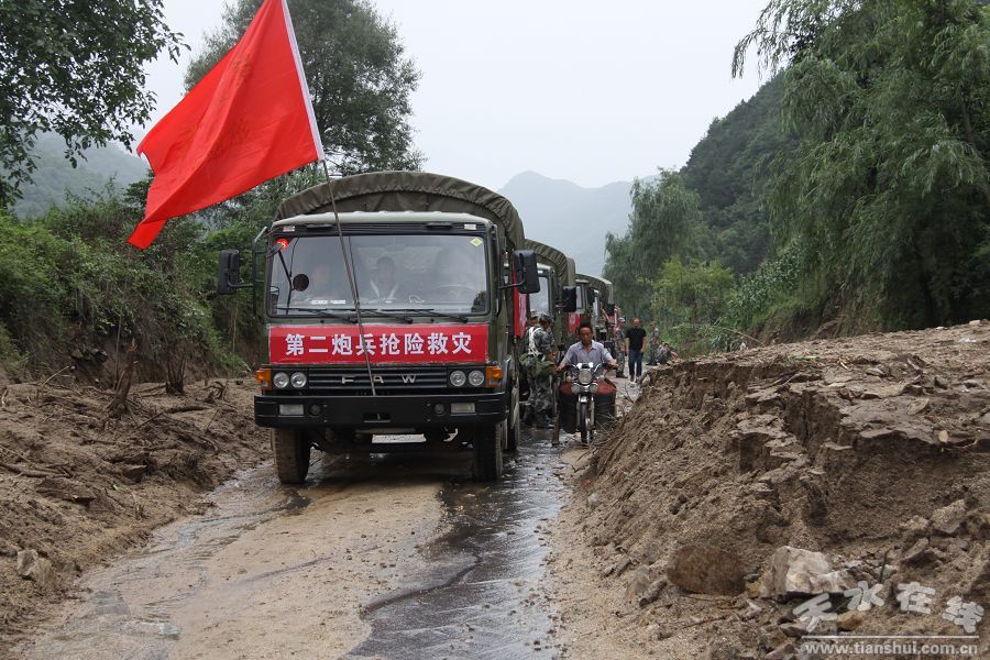 連續(xù)9小時(shí)強(qiáng)降雨,引發(fā)甘肅隴南部分地區(qū)多處山洪、泥石流和山體滑坡,316國道天水至徽縣段損毀嚴(yán)重,30多處路段被1米多厚的泥沙掩埋,10多座橋梁受損,特別是成縣黃渚鎮(zhèn)交通、電力、通信中斷,成為一座“水中孤島”,8000余名群眾受困亟待救援。