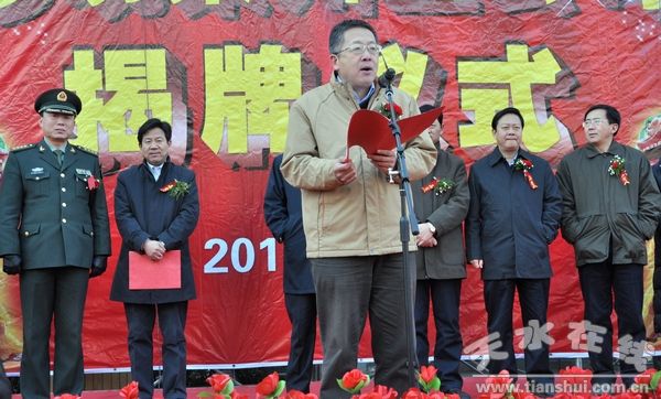 市委副書記張應(yīng)華,市委常委、紀(jì)委書記楊維俊,市委常委、宣傳部長王光慶,市委常委、秦州區(qū)委書記張明泰,市委常委、軍分區(qū)司員令鄭黎,市人大常委會副主任黃郁出席揭牌儀式。市、區(qū)交通、財(cái)政金融、教育衛(wèi)生、工商稅務(wù),各類企業(yè)、新聞媒體及有關(guān)業(yè)務(wù)單位共190多人余人參加了揭牌儀式。