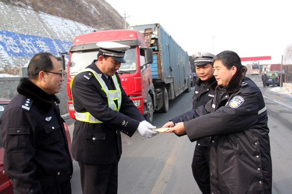 1月20日,是今年春運啟動后的第一天。天水市公安局副局長、交警支隊長隊長霍秦生帶領春運交通安全工作領導小組有關負責人一行4人,先后深入甘谷縣、武山縣和剛移交的天巉公路卦臺山春運交通安全服務站,代表天水交警支隊黨總支對嚴寒氣候下仍辛勤堅守在春運一線執(zhí)勤的交通民警及協(xié)管員,進行了親切的慰問,并實地檢查指導了各項春運道路交通安全管理工作。