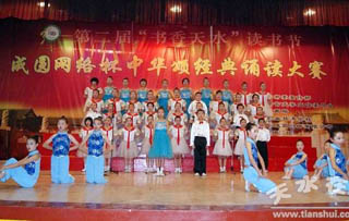 此次中華頌•經(jīng)典誦讀大賽是由市委宣傳部、市文明辦、市教育局、市文化文物出版局、市廣播電影電視局、市總工會、團(tuán)市委、市婦聯(lián)、市社科聯(lián)等9家單位主辦的“紀(jì)念第十六個世界讀書日暨第二節(jié)屆‘書香天水’讀書節(jié)”中的一項活動,目的在于通過倡導(dǎo)讀書,特別是中國傳統(tǒng)典籍,重溫中華傳統(tǒng)文化的深厚積淀和魅力,從而不斷提高廣大市民的文化素質(zhì),不斷提升城市文化品位和城市競爭力,在全社會形成人人讀書、多讀書、讀好書的良好氛圍,使讀書成為全體市民的內(nèi)在生活方式。