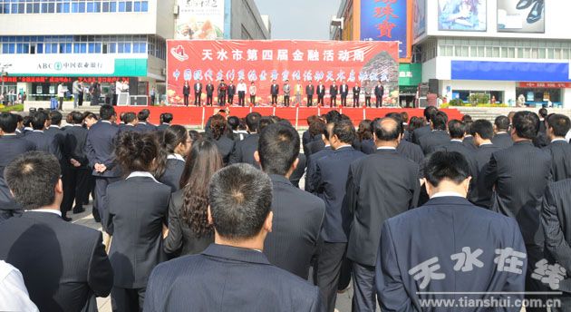 (5月26日,天水市第四屆“金融活動(dòng)周”中國(guó)現(xiàn)代支付系統(tǒng)業(yè)務(wù)宣傳活動(dòng)啟動(dòng)儀式在龍城廣場(chǎng)舉行。)