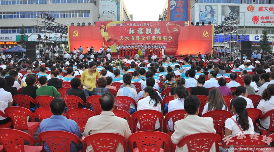 昨夜星光燦爛,昨夜紅歌縈空。6月26日晚8時至11時許,由中共天水市委宣傳部,天水市文明辦、天水市文化文物出版局等單位主辦的紀(jì)念中國共產(chǎn)黨成立90周年天水市“紅旗飄飄”群眾紅歌演唱會在龍城廣場隆重舉行。