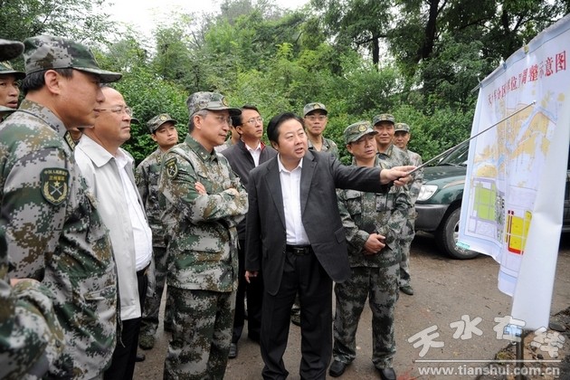 8月18日至19日,省委常委、省軍區(qū)司令員陳知庶,省軍區(qū)參謀長李林一行來我市檢查指導(dǎo)工作。市委書記馬世忠,市委常委、政法委書記韓岱成,市委常委、天水軍分區(qū)司令員鄭黎,天水軍分區(qū)政委李治林陪同檢查。