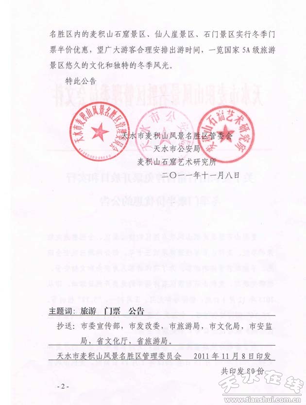 ·關(guān)于麥積山石窟暫停免票開放日的公告(圖)