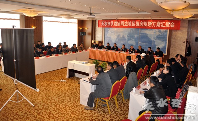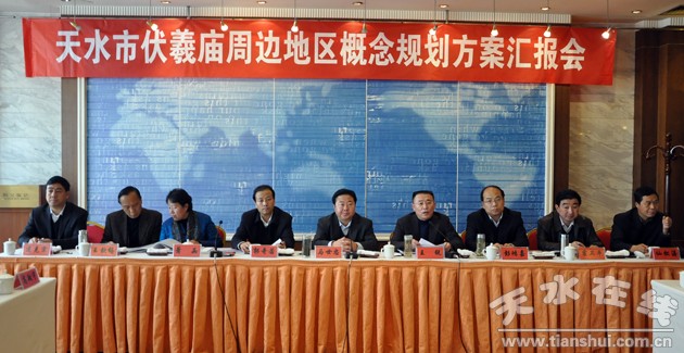 在當(dāng)天下午召開的匯報(bào)上,天水市委書記馬世忠,市委副書記、市長王銳,市委常委、常務(wù)副市長郭奇若,市委常委、宣傳部長彭鴻嘉,市人大常委會(huì)副主任蕭菡,副市長霍衛(wèi)平,市政協(xié)副主席王欽錫等聽取了清華大學(xué)美術(shù)學(xué)院關(guān)于天水市伏羲廟周邊地區(qū)概念規(guī)劃方案。與會(huì)領(lǐng)導(dǎo)和市規(guī)劃局、發(fā)改委、博物館、文廣局等相關(guān)單位和部門的負(fù)責(zé)人分別從不同角度就方案的修改完善提出了意見和建議。
